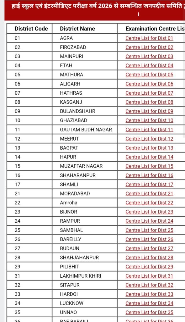 | UP Board Final Center List 2026 District Wise : | Link 1 | Link 2 |
