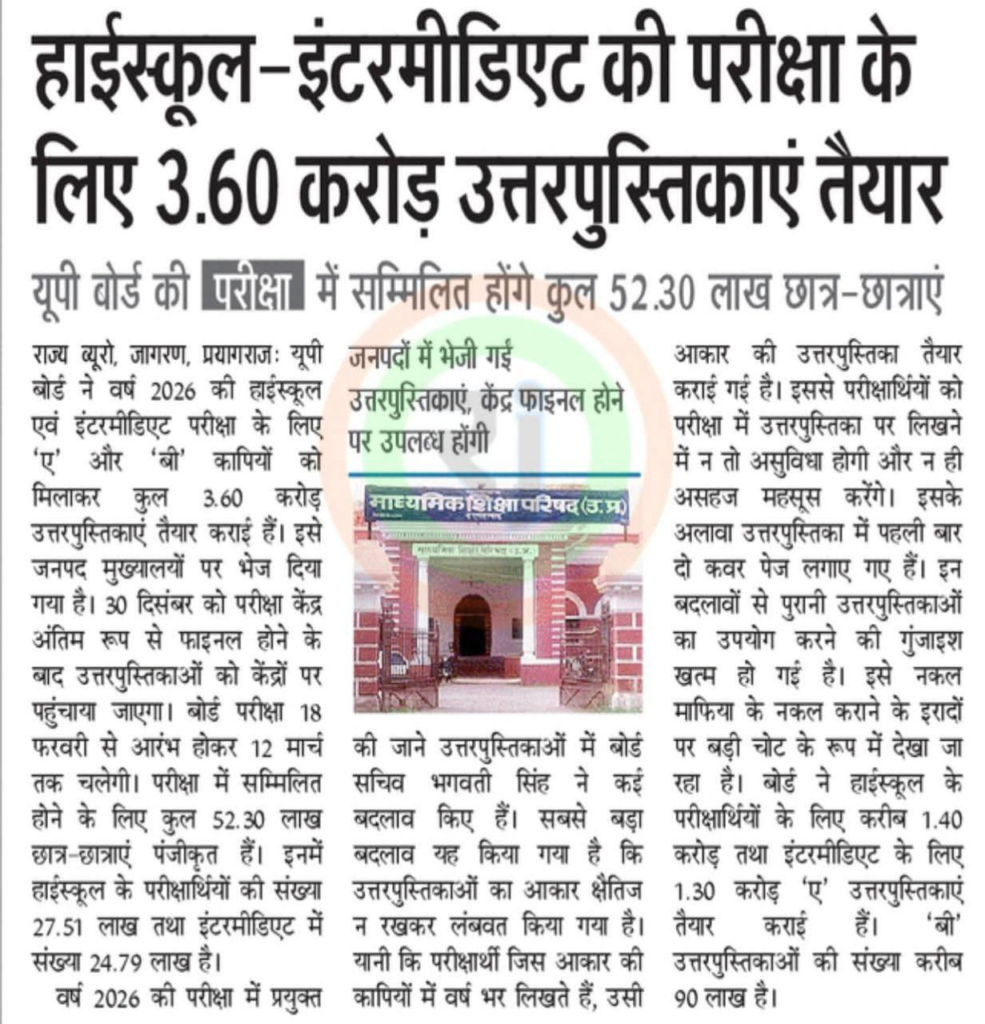 यूपी बोर्ड 3 करोड़ 60 लाख उत्तर पुस्तिका तैयार है
